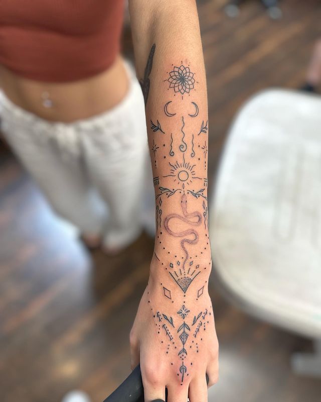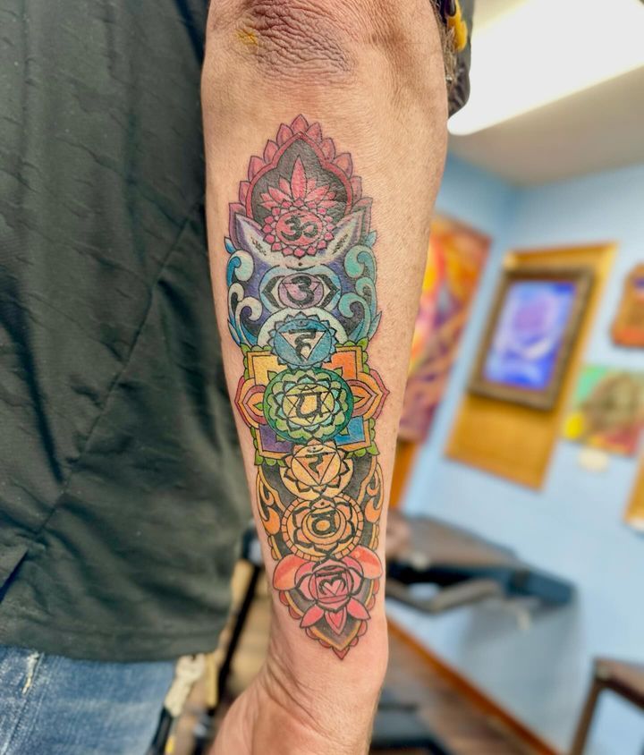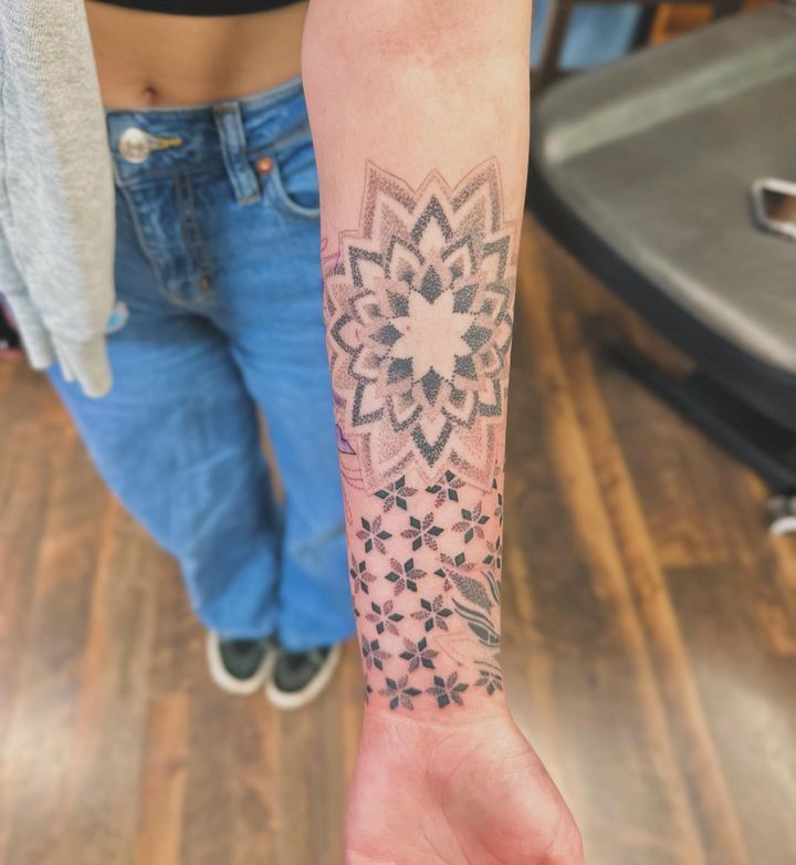 Shelby specializes in Fine Line Tattoos, floral sleeves, and color/ realism. Her favorite subjects include Mandalas, anything line-work oriented, animals and floral flow. Her painterly technique, soft work and crisp edges are all trademarks of her style.